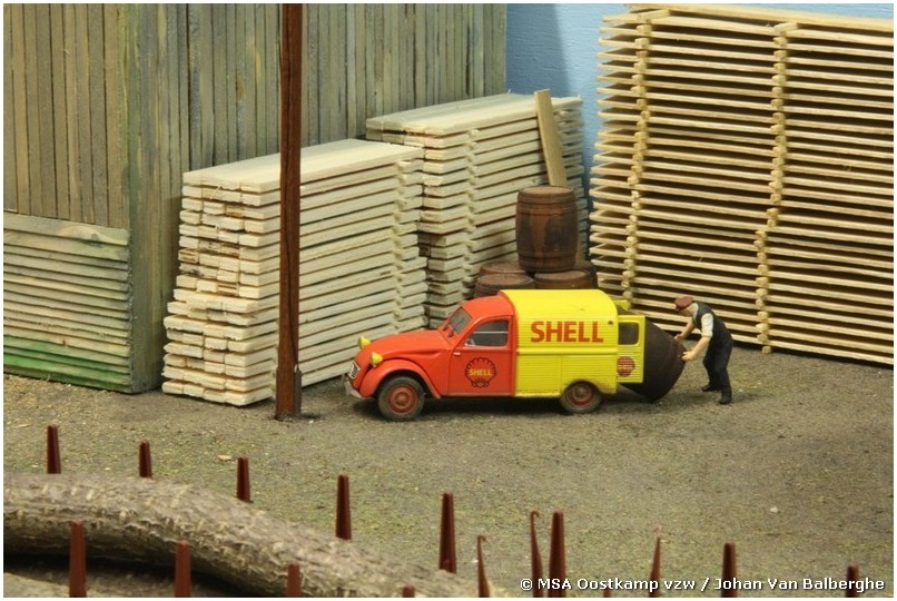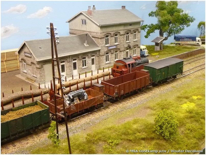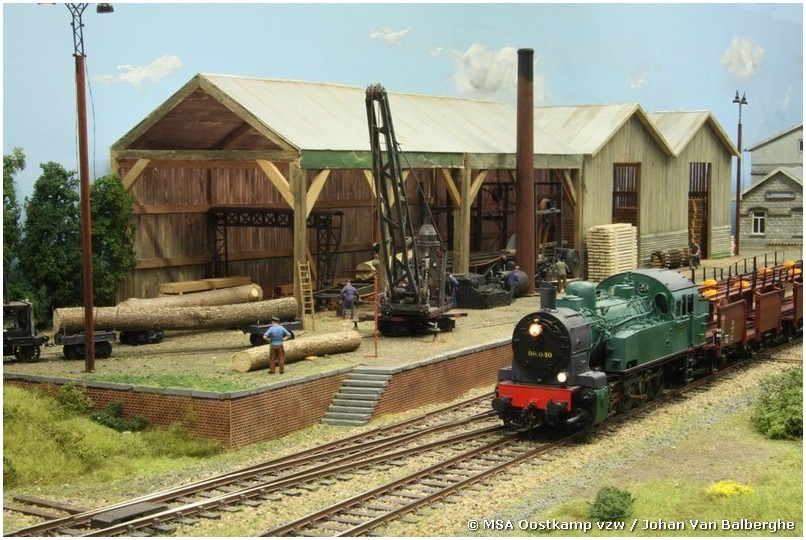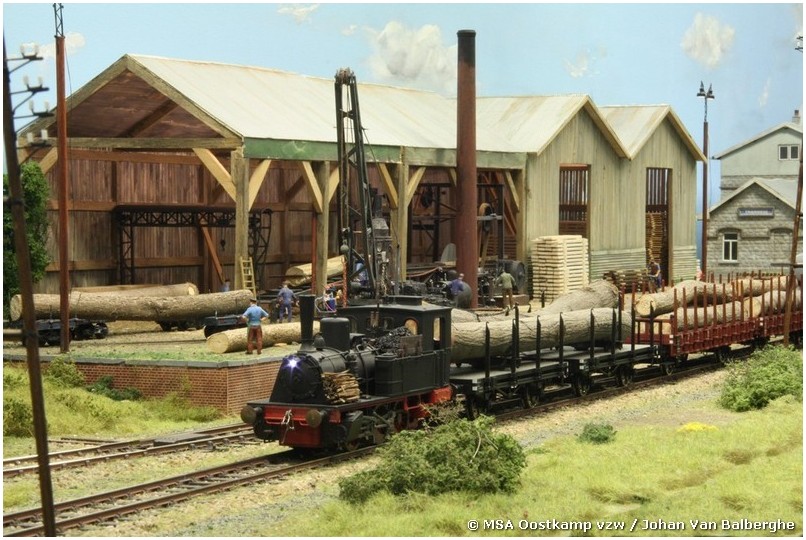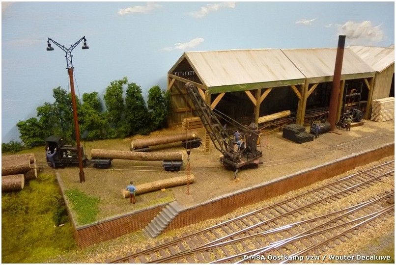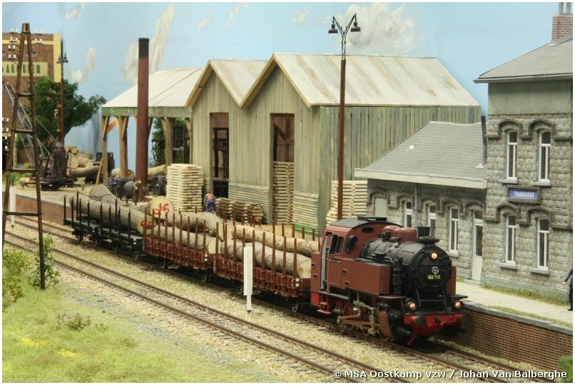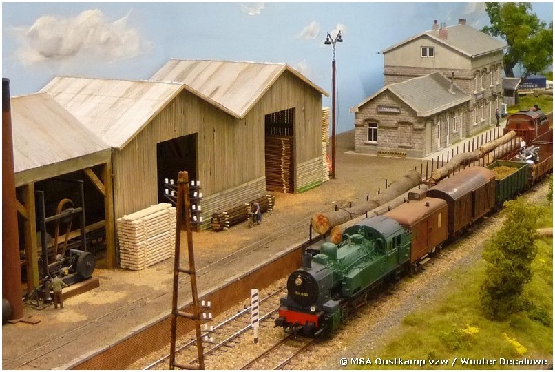 Het vroegere station Thanasse is gemaakt met architectenkarton, waarop styrodur platen met steentjesmotief zijn geplakt. De zagerij zelf is gemaakt van… gezaagde latjes. Waarom moeilijk maken als het makkelijk kan ?