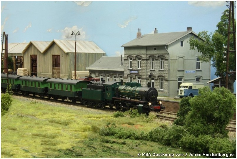 Deze 23m lange modulebaan in schaal 0 (1/43) is de evocatie van een fictieve spoorlijn uit de 50-er jaren, gelegen in de Thiérace, het zuidelijk deel van de provincies Henegouwen en Namen, met aansluiting op het Franse spoornet. Het rechtergedeelte van deze baan is het station van ‘Cabusart’ (zie MSM nr 52), het linker gedeelte de spoorlijn met de aansluitingen naar de plaatselijke industriën, de brouwerij ‘Degauquier’ en de houtzagerij ’Gilson Frères’ waarvan de burelen een onderkomen gevonden hebben in het voormalige station van’ Thanasse’. Alle scenery en gebouwen werden door de leden van MSA Oostkamp vzw (B), meestal naar bestaande voorbeelden, zelf gebouwd. De baan is gedigitaliseerd en de meeste loks werden voorzien van een geluidsdecoder.