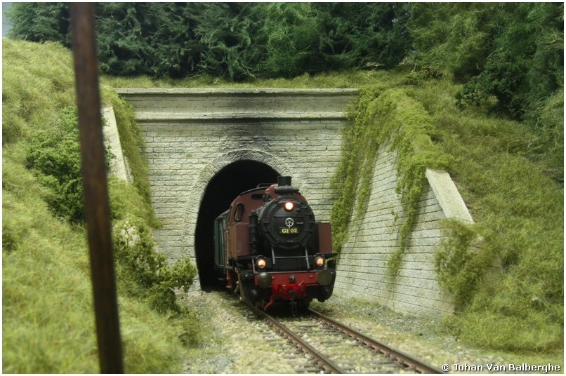 De brouwerij is gemaakt van 8mm multiplex, waarop Slaters plasticard is gelijmd. Weinig kans dat die sneuvelt… De tunnelingang is gegoten in bouwgips en dan met de hand ingekrast, en de bomen erboven zijn zelf gemaakt terwijl met een half oog is gekeken naar de producten van Anita Decor.