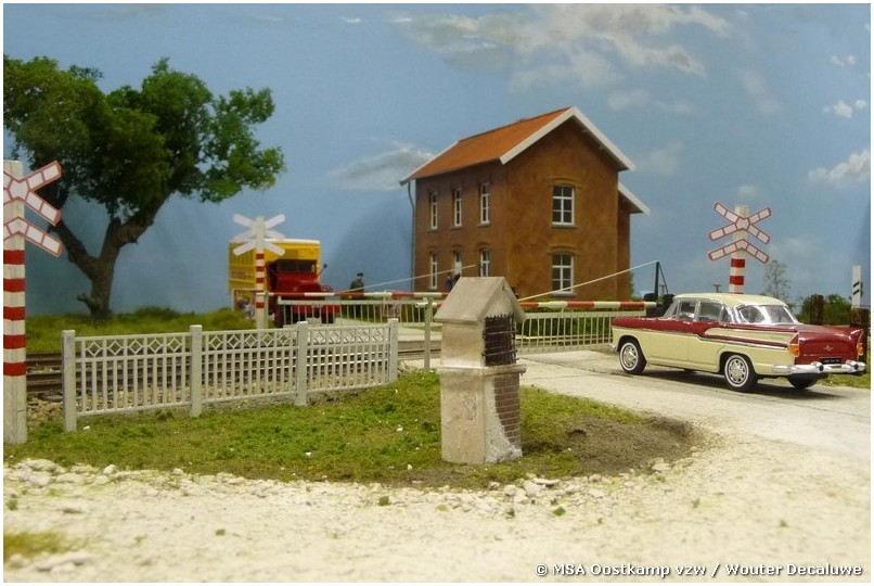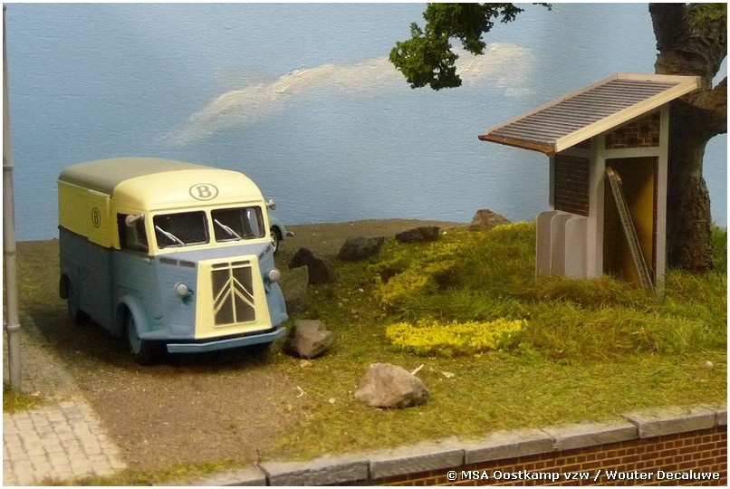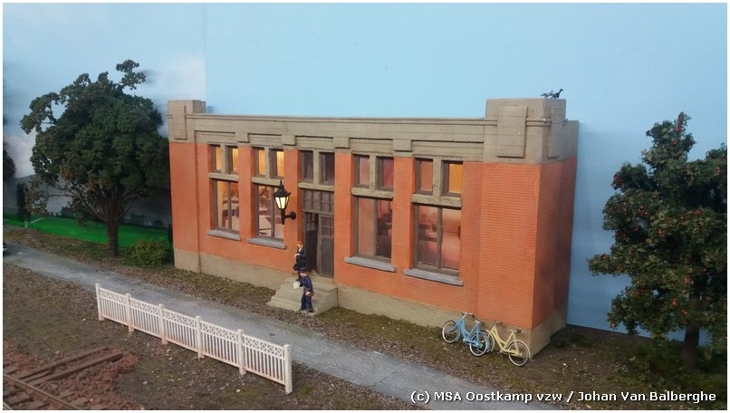 Het baanwachtershuis is gebouwd met architectenkarton en Slaters plasticard. De daken komen van Schulcz, een Duitse firma gespecialiseerd in bouwmaterialen voor architecten.
