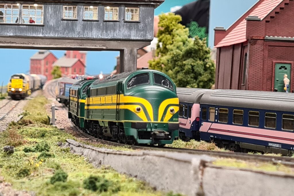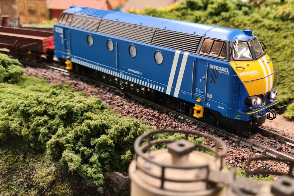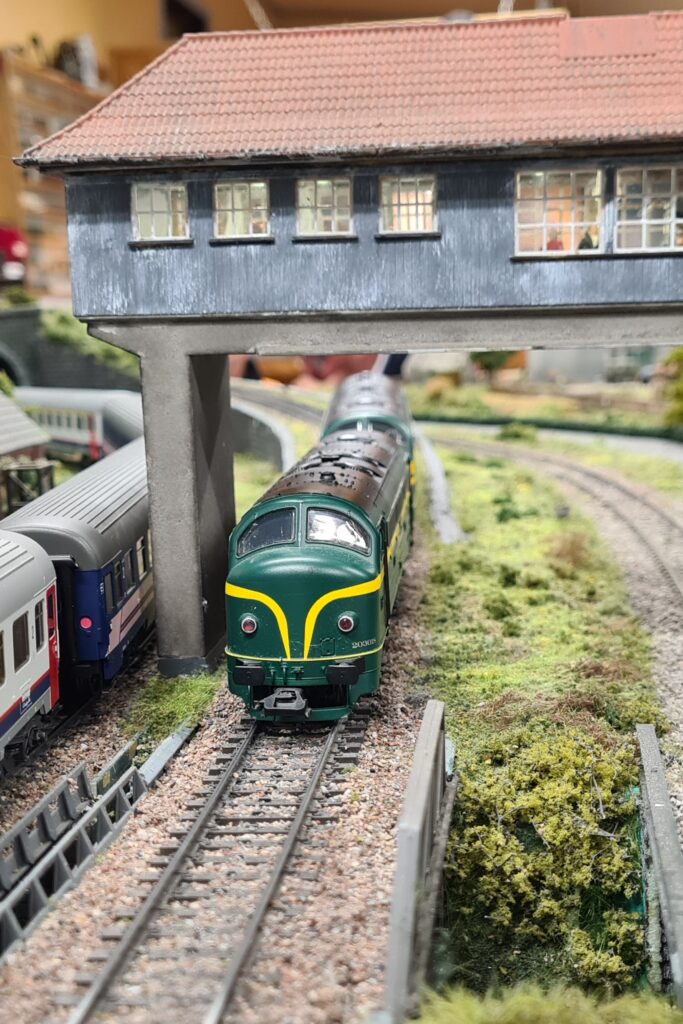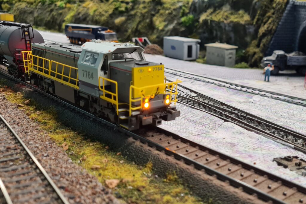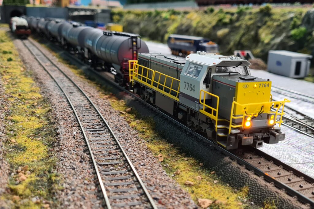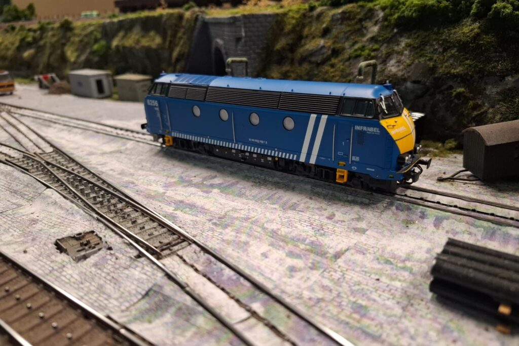 De baan bestaat uit 6 modules, is een “eilandbaan” – van 4 kanten te bezichtigen en heeft een leuke afmeting van 4.5 m x 1.80 m. Ze kan zowel digitaal als analoog bestuurd worden. Door het plaatsen van een tussenwand (achtergrond) wordt het ruimtelijk effect nog wat groter.