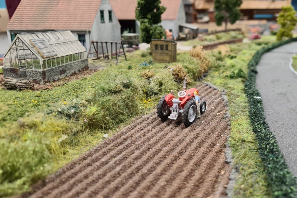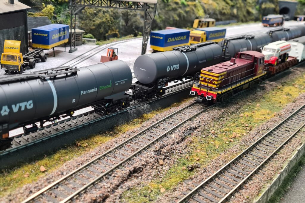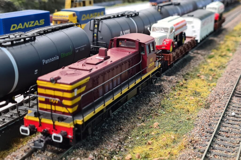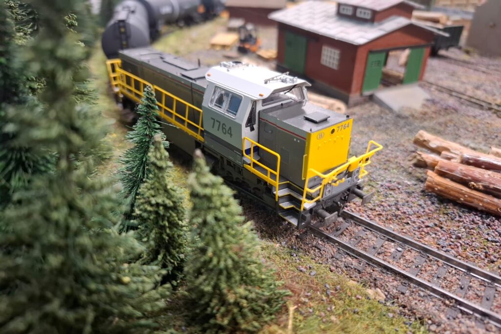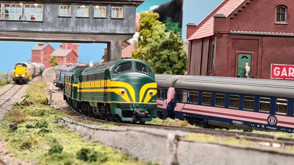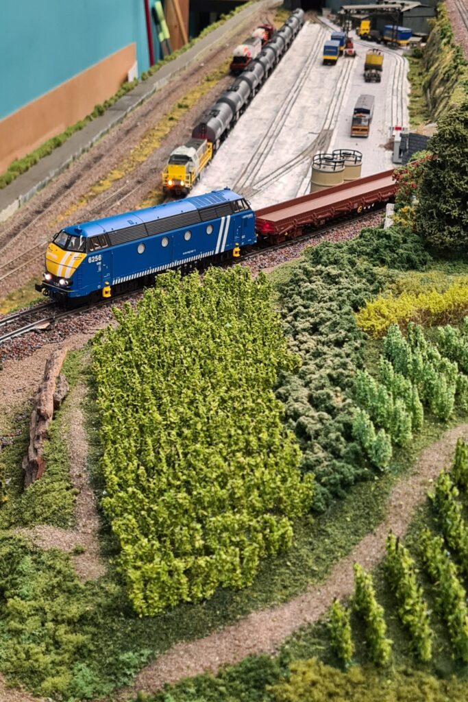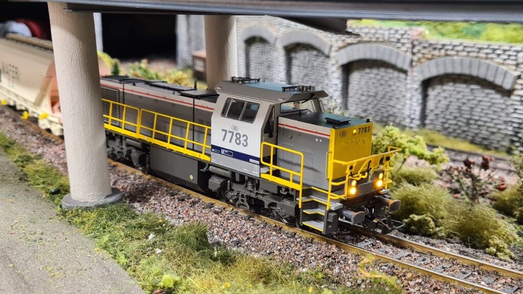 De baan bestaat uit 6 modules, is een “eilandbaan” – van 4 kanten te bezichtigen en heeft een leuke afmeting van 4.5 m x 1.80 m. Ze kan zowel digitaal als analoog bestuurd worden. Door het plaatsen van een tussenwand (achtergrond) wordt het ruimtelijk effect nog wat groter.