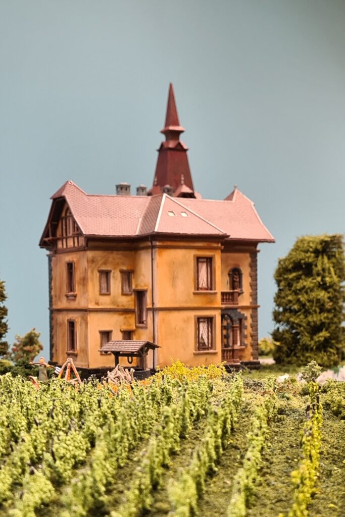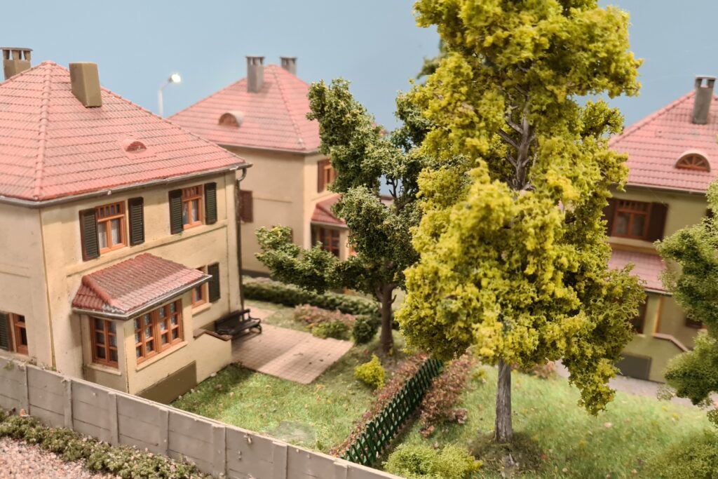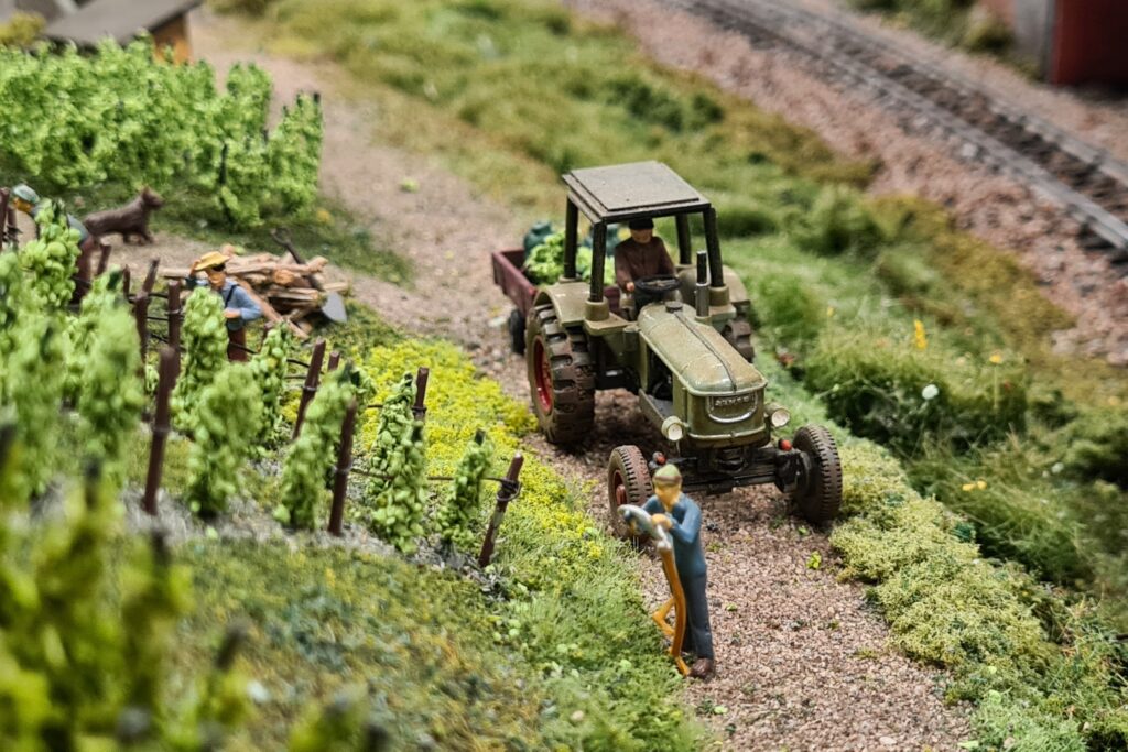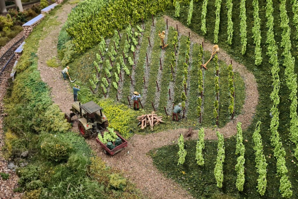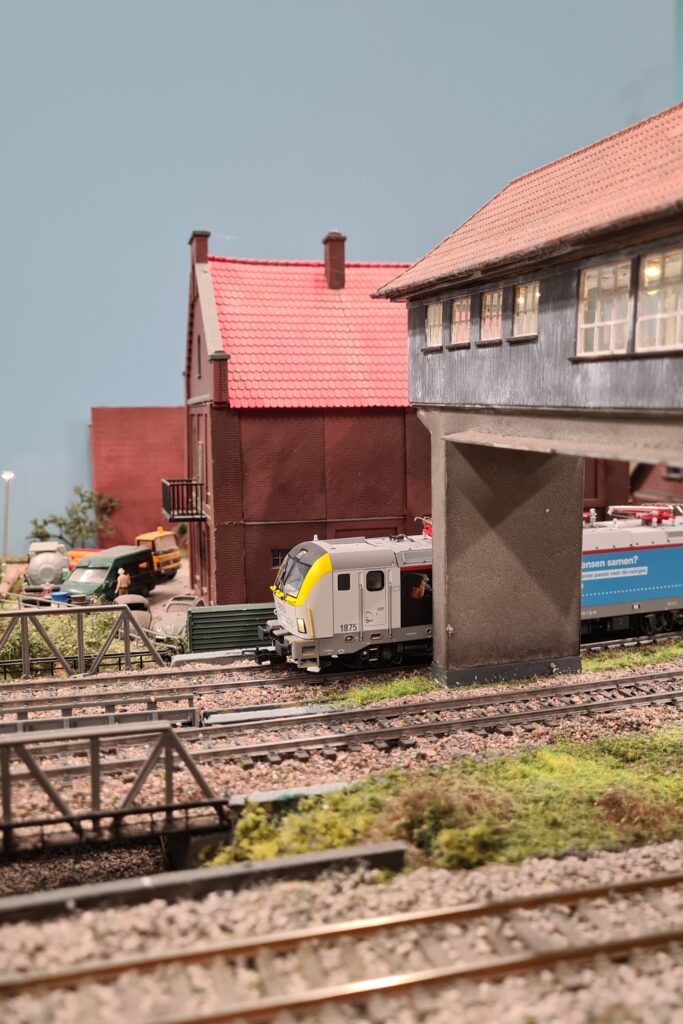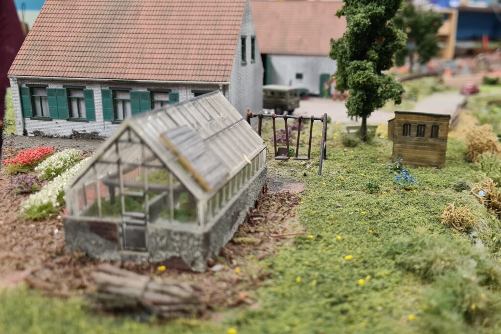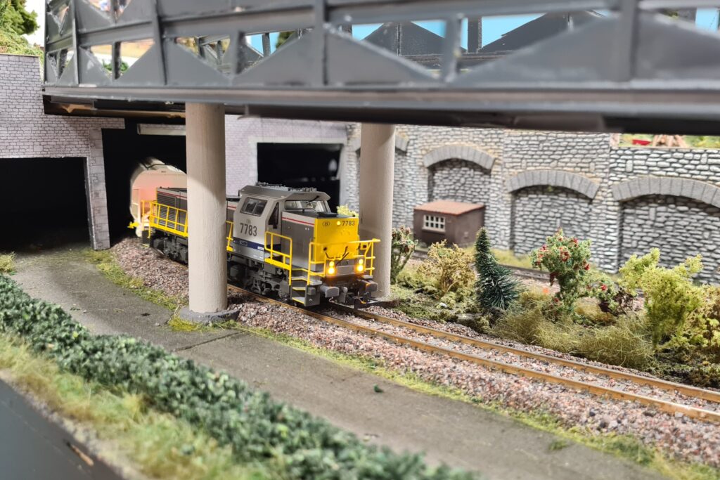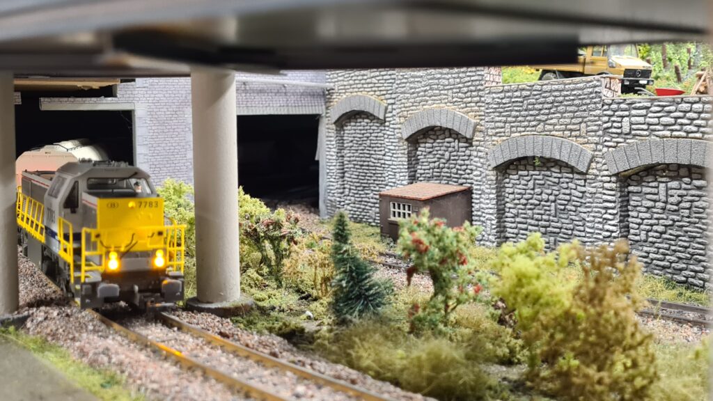 Het was geenszins de bedoeling dat deze baan gemaakt zou worden door doorgewinterde hobbyisten. Neen, deze baan zou een leerproject worden, in navolging van een eerder doodgebloed project, de startersbaan. We kregen de voorbije jaren veel nieuwe leden en we wilden de mensen een platform geven om hun kunnen te tonen en we wilden hen de kans geven om dit verder te ontwikkelen. Al doende leert men. Bruggen werden gebouwd, honderden wijnranken werden gemaakt, er werd water aangelegd, tracé, nieuwe perrons, bomen, hekken, … Voor onze “anciens” was het vaak moeilijk om zich wat in te houden. Door hier en daar wat bij te sturen werd een mooi resultaat bereikt.